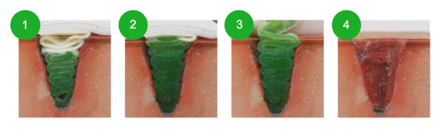 Sob pressão de 40mmHg, Exufiber AG+ retém 23% mais fluidos do que a fibra gelificante 100% CMC.