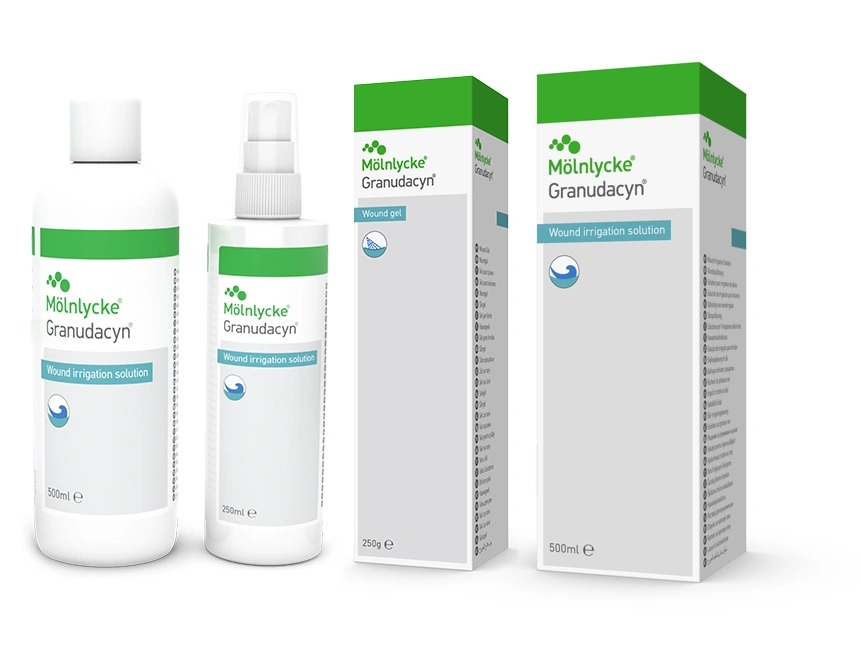 7. Granudacyn Wound Irrigation Solution and Wound Gel. J Wound Care. 2020 Oct 1;29(Sup10a):S9. doi: 10.12968/jowc.2020.29.Sup10a.S9. PMID: 33016842.