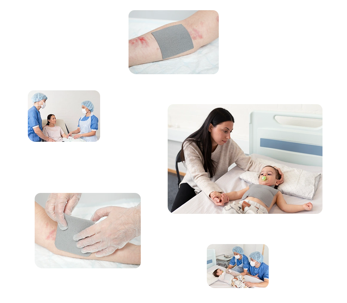 Curativo de silicone ideal para prevenção e tratamento de cicatrizes hipertróficas e queloides, apoiando o cuidado com pacientes queimados.